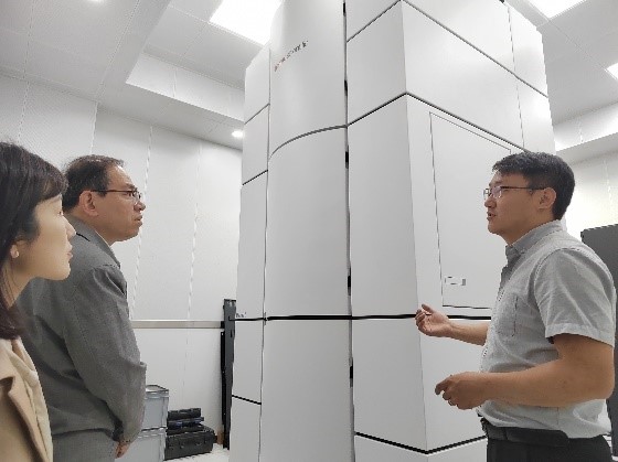 北化院环保所党支部书记、所长刘轶群及团队科研骨干首先参观了化学楼、分析测试中心以及气体分离相关研究实验室,化工所冯英楠、王涛和分析测试中心综合室主任高培峰等老师向北化院环保所一行介绍了必威西汉姆联及化学工程研究所的科研优势、现有条件以及所获得科研成果等。