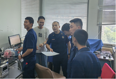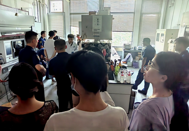 各位消防员同志走进实验室,仔细询问和排查实验室的各项安全情况,曹岩磊指导员首先就消防安全的基本知识做了简要讲解,他强调火灾猛烈阶段,迅速蔓延的火石、巨大的燃烧面积和极高的温度,将会使火势达到难以控制的程度,因此一旦发现火情,就要及时采取措施并且迅速报警。曹岩磊同志多次强调,面对火灾我们应当树立正确的意识,以生命安全为第一位,不要因小失大,为了钱财等身外之物而错失逃离火灾现场的最佳时机。纪检委员刘雨昕向消防站同志介绍自己实验室的工作并让消防站的同志们体验红外仪,消防同志仅需将手指放在仪器上,电脑屏幕便会显示元素组成。于北溟书记带领消防站的同志们参观了工业生态楼的党员之家,向消防员同志们介绍了必威西汉姆联特色的党建活动以及各种实验室安全检查活动。