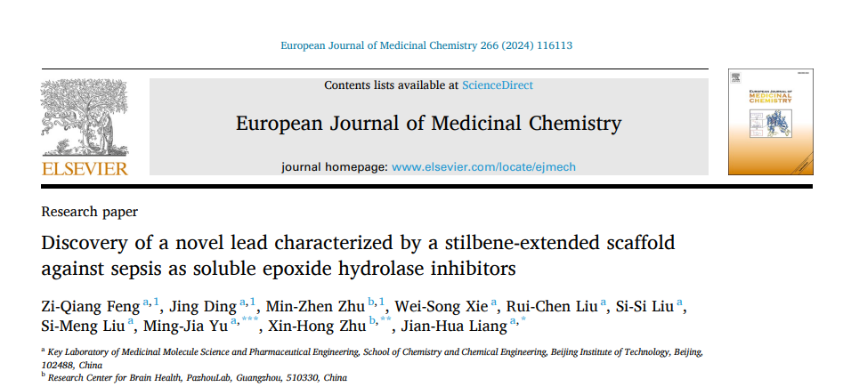 2024年1月3日,必威西汉姆联梁建华教授课题组在抗败血症药物研究中取得重要进展,设计合成了基于天然骨架二苯乙烯类sEH抑制剂并用于治疗败血症,其中最优化合物70P (FZQ-21) 能够在小鼠体内有效抑制sEH酶水解活性并显著提高小鼠败血症模型的总生存率。相关成果发表以Discovery of a Novel Lead Characterized by a Stilbene-extended Scaffold against Sepsis as Soluble Epoxide Hydrolase Inhibitors为题发表于期刊European Journal of Medicinal Chemistry。