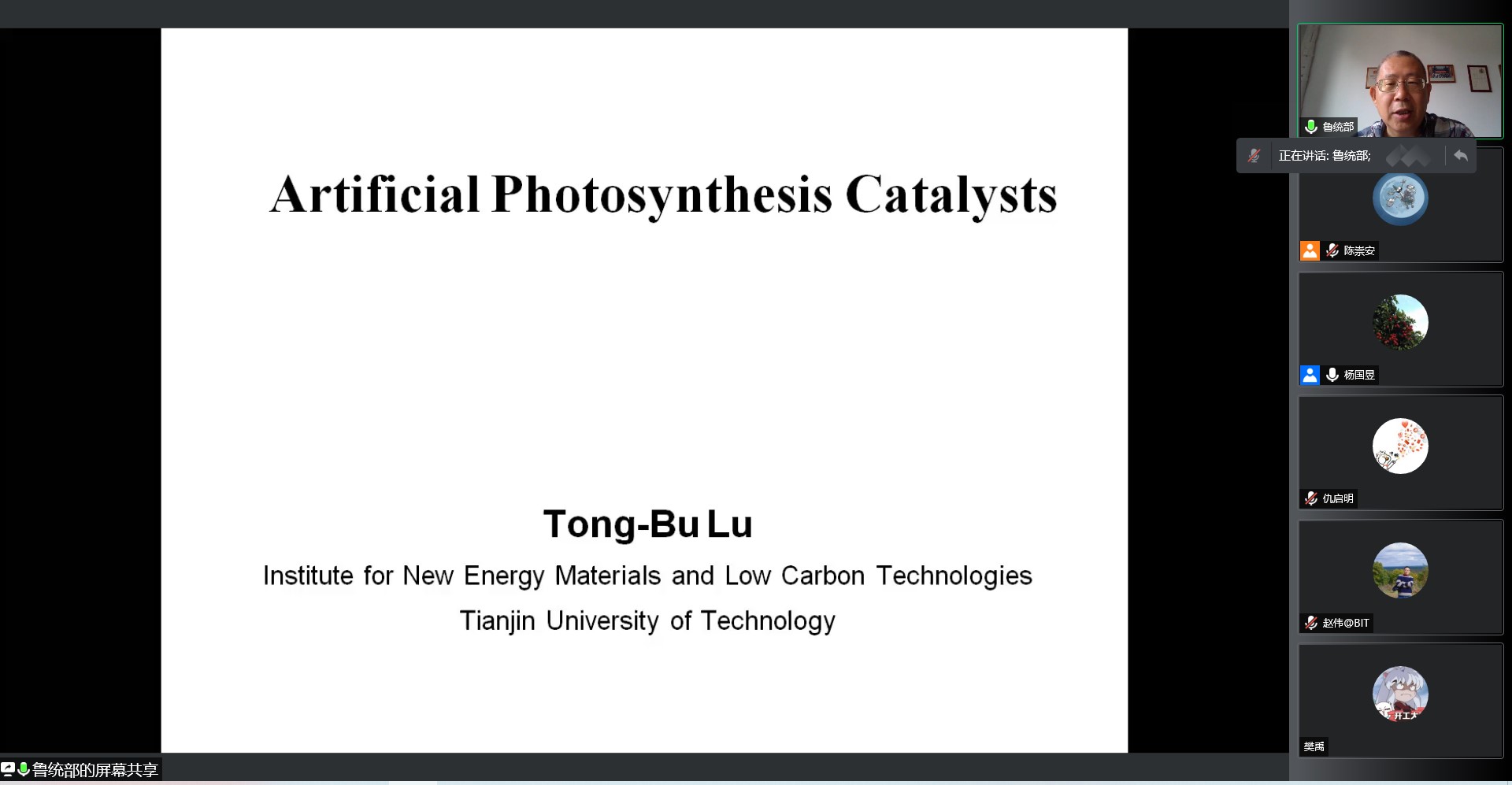 应必威西汉姆联邀请,天津理工大学鲁统部教授于2021年7月2日8:00做客北理工“百家大讲堂”,为我院广大师生带来题为“人工光合作用催化剂”的精彩学术报告。本次报告在腾讯会议平台线上进行,由杨国昱老师主持,近百名化院师生参加了报告。