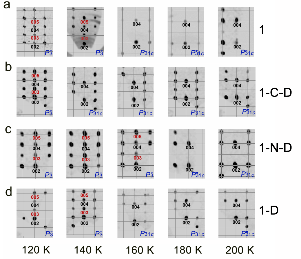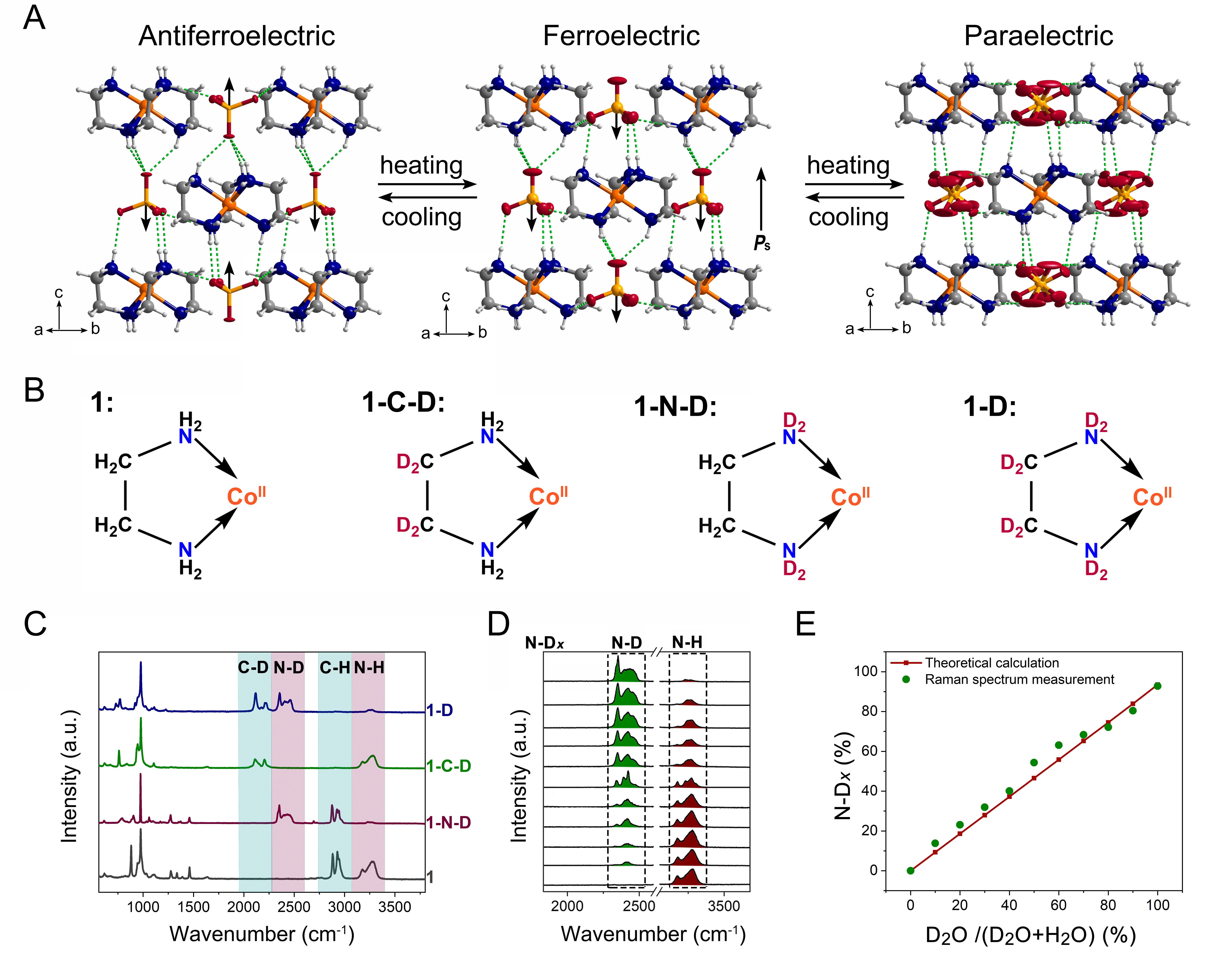 自1931年发现氘同位素以来,氘代被广泛用于调控材料的化学和物理性质。1942年,研究者发现氘代KH2PO4(KDP)后材料的铁电相变温度提高107 K,随后氘代被进一步研究应用于调控材料的导电、磁性、荧光性质等。在目前已知的研究体系中,显著的氘代效应发生在伴随质子转移的强氢键结构中,而对于更为普遍的弱氢键体系,氘代效应并不明显,这个问题极大的限制了氘代在物性调控方面的进一步应用。