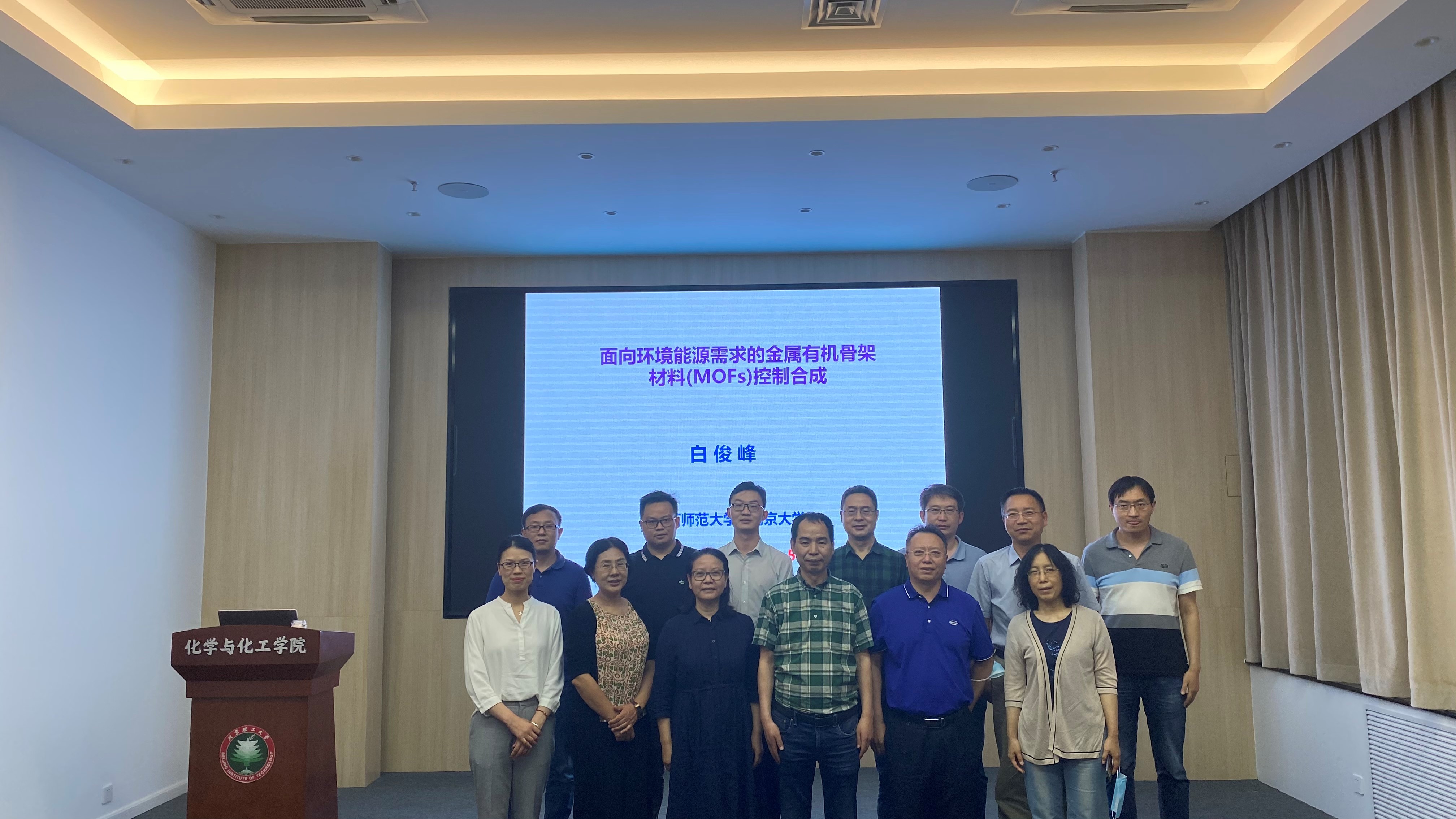白俊峰教授首先介绍了当前全球面临的气候变化和能源危机问题,从温室气体的捕获和清洁能源的开发两个基本点出发,利用对金属有机框架材料(MOFs)结构和性能的精细和广泛调控,设计合成了一系列具有优异乙炔、甲烷储存性能及温室气体捕获和转换性能的MOFs材料。同时,采用多级构建思路,组装了具有新型结构高性能的MOFs材料,首次提出了纯有机超分子连接子的新合成策略。在此基础上,白俊峰教授课题组发展了以金属有机框架为前体制备纳米碳管的简便近绿色新方法。报告结束后,白俊峰教授与在场师生积极互动,对师生们提出的问题进行了耐心且细致的解答,与会师生收获颇丰。