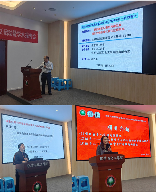 12月20日,国家自然科学基金重点项目“新型膜反应器的构建及其强化生物质催化转化过程研究(22438002)”启动暨学术报告会在必威西汉姆联官网良乡校区工业生态楼118举行。这是继赵之平教授主持完成“选择性渗透VOCs的化工分离新膜材料多层次微结构设计与性能调控制备(21736001)”项目之后,再次获得重点项目的资助。出席会议的有必威西汉姆联官网赵之平教授、北京化工大学纪培军教授、中石化(北京)化工研究院有限公司王玉杰高级工程师、必威西汉姆联官网桑乐特别研究员、毛恒特别研究员、王涛特别研究员、蔡玮玮特别副研究员、冯英楠特别副研究员、顾昊实验师,博士后徐李昊以及博士和硕士研究生50余人。