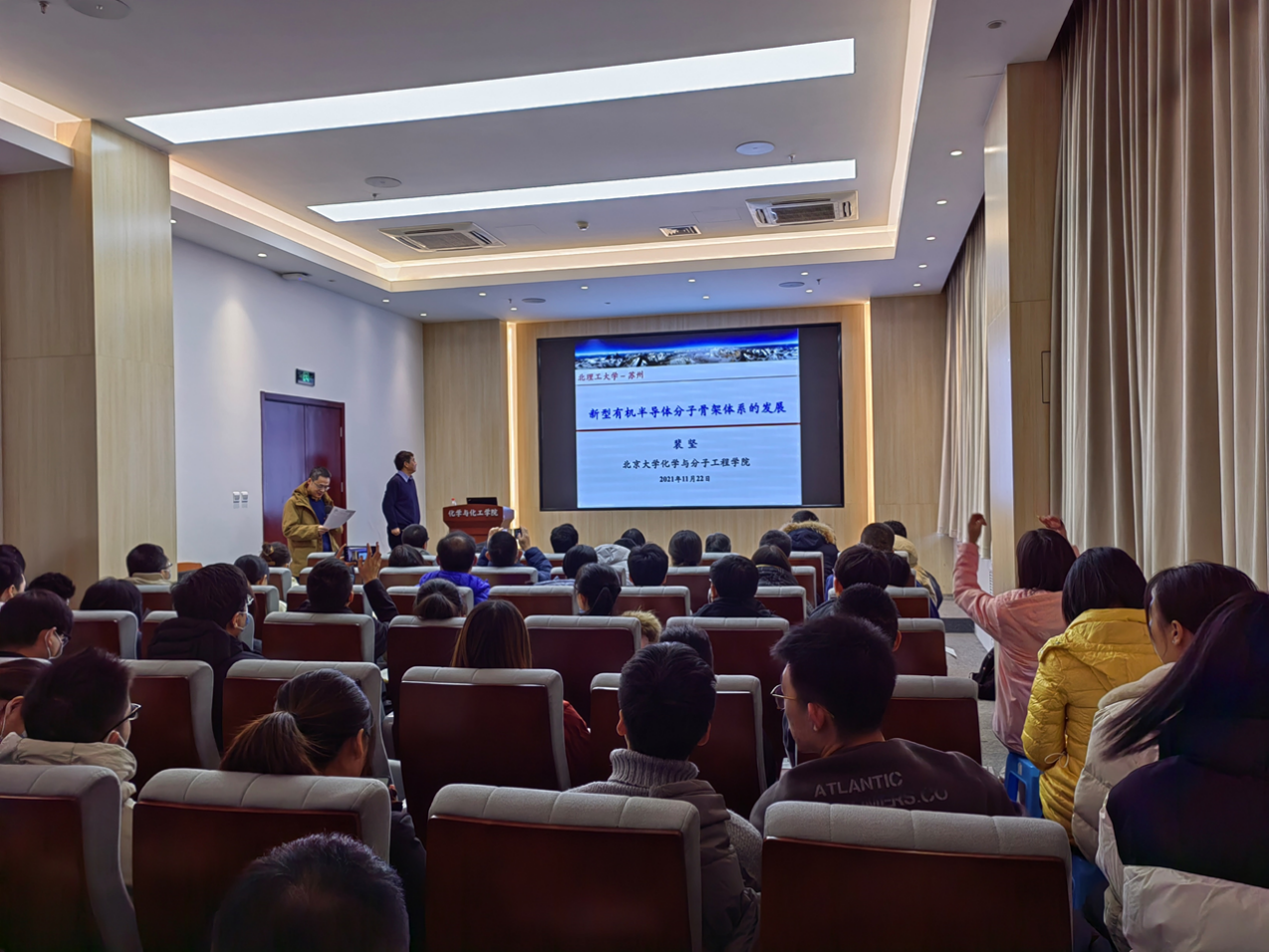 2021年11月22日上午,由必威西汉姆联官网研究生院主办、必威西汉姆联承办的北理工“百家大讲堂”系列讲座在工业生态楼118报告厅举行。北京大学化学与分子工学院裴坚教授受邀作题为“新型有机半导体分子骨架体系的发展”的学术报告。来自必威西汉姆联的部分研究生、求是书院和特立书院的部分本科生以及必威西汉姆联的陶军教授、张小玲教授、金旭辉教授、杜大明教授、吴彪教授、王金亮教授、安桥石特别研究员等共计100余名师生参加了本次报告会。本次报告会由必威西汉姆联副院长陶军教授主持。