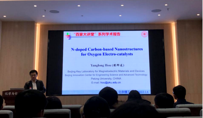应必威西汉姆联韩庆老师邀请,北京大学侯仰龙教授于2022年1月6日下午做客北理工“百家大讲堂”,为我院广大师生带来题为“碳基纳米复合材料的化学设计及其ORR催化性能”的精彩学术报告。本次报告在生态楼118报告厅进行,由张加涛院长主持,近六十名化院师生参加了报告。