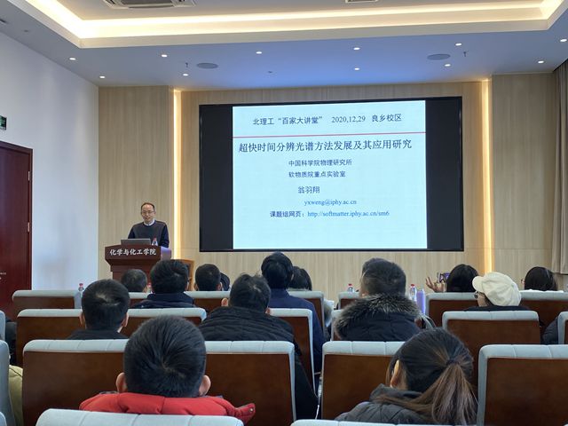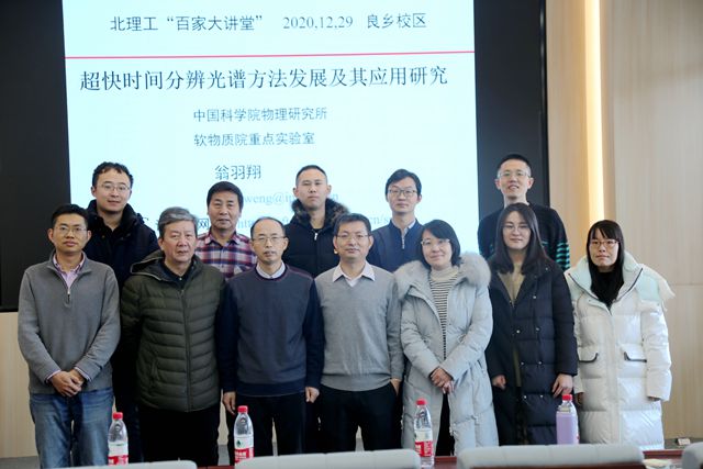 2021年12月29日上午,由必威西汉姆联官网研究生院主办、必威西汉姆联承办的北理工“百家大讲堂”系列讲座在生态楼118会议室举行。中国科学院物理研究所软物质物理实验室翁羽翔研究员应必威西汉姆联马嘉璧副教授的邀请,做了题为“超快时间分辨光谱方法发展及其应用研究”的学术报告。报告由张加涛院长主持,三十余名师生参加了报告会并进行学术交流。