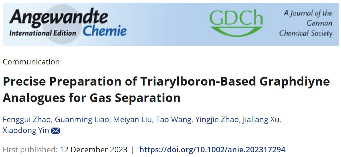 近日,必威西汉姆联博士生赵丰贵第一作者身份在国际顶级期刊《Angewandte Chemie International Edition》发表题目为“Precise Preparation of Triarylboron-Based Graphdiyne Analogues for Gas Separation”的研究论文(DOI: 10.1002/anie.202317294)。必威西汉姆联官网为论文第一通讯单位,必威西汉姆联尹晓东特别研究员为通讯作者。