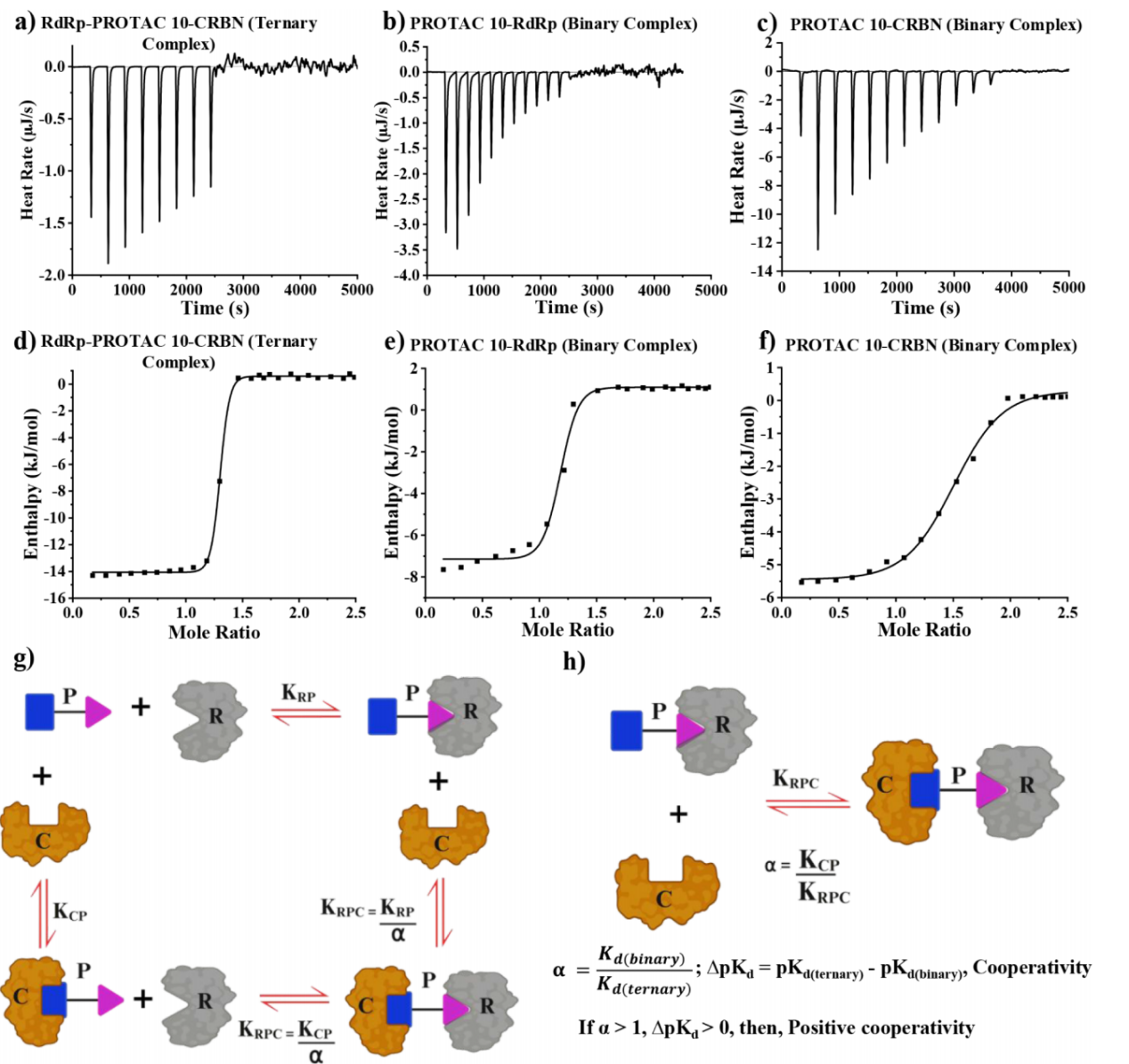 图 2. 先导化合物PROTAC 10诱导E3连接酶与靶蛋白(POI)形成三元复合物的结合及热力学分析
