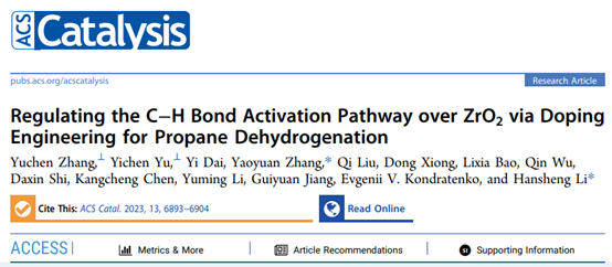 近日,必威西汉姆联黎汉生教授团队在丙烷脱氢催化剂结构调控与C-H键活化机制方面取得重要进展。相关研究成果以“Regulating the C–H Bond Activation Pathway over ZrO2 via Doping Engineering for Propane Dehydrogenation”为题,在催化领域顶级期刊《ACS Catalysis》上发表(DOI:10.1021/acscatal.3c01002)。该工作以必威西汉姆联官网为第一通讯单位,黎汉生教授和张耀远预聘助理教授为共同通讯作者,硕士研究生张雨宸和于宜辰为该论文的共同第一作者。