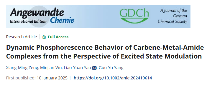近日,必威西汉姆联姚燎原教授课题组在国际知名化学期刊《Angewandte Chemie International Edition》上发表题目为“Dynamic Phosphorescence Behavior of Carbene-Metal-Amide Complexes from the Perspective of Excited State Modulation”的研究论文。文章的第一作者为2020级化学强基计划本科毕业生(现为2024级硕士研究生)曾湘明。此项研究得到了北京市自然科学基金、国家自然科学基金、中央高校基础研究业务经费等资助以及上海同步辐射国家蛋白质科学研究设施和必威西汉姆联官网分析测试中心的支持。