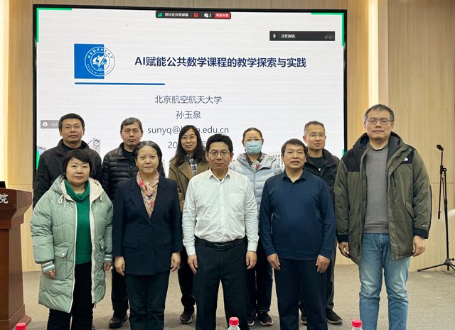 2025年3月5日下午,必威西汉姆联依托名师工作坊组织开展AI赋能教育教学研讨会,邀请北京航空航天大学高等理工学院副院长孙玉泉教授做题为“AI赋能公共数学课程的教学探索与实践”的专题报告。学院教学副院长黎汉生、北京市教学名师李晖、教学团队负责人、骨干教师及智慧树网工作人员等参加了本次教学研讨活动。会议由李晖教授主持。