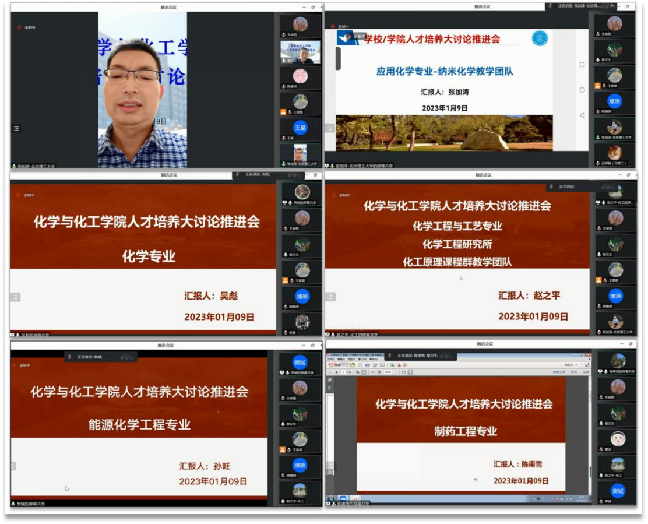 随后,化学专业责任教授吴彪、应用化学专业责任教授张加涛、化学工程与工艺责任教授赵之平、能源化学工程专业责任教授助理樊铖、制药工程专业责任教授陈甫雪分别结合本专业的人才培养进行了汇报,介绍了专业发展现状,建设成效,以及在人才培养中发现的问题、思考以及举措和建议;结合人才培养大讨论的议题,明确生源的数量和质量急需提升、教师梯队还需进一步完善,核心课程建设及教学成果需做好顶层谋划等目标与举措。
