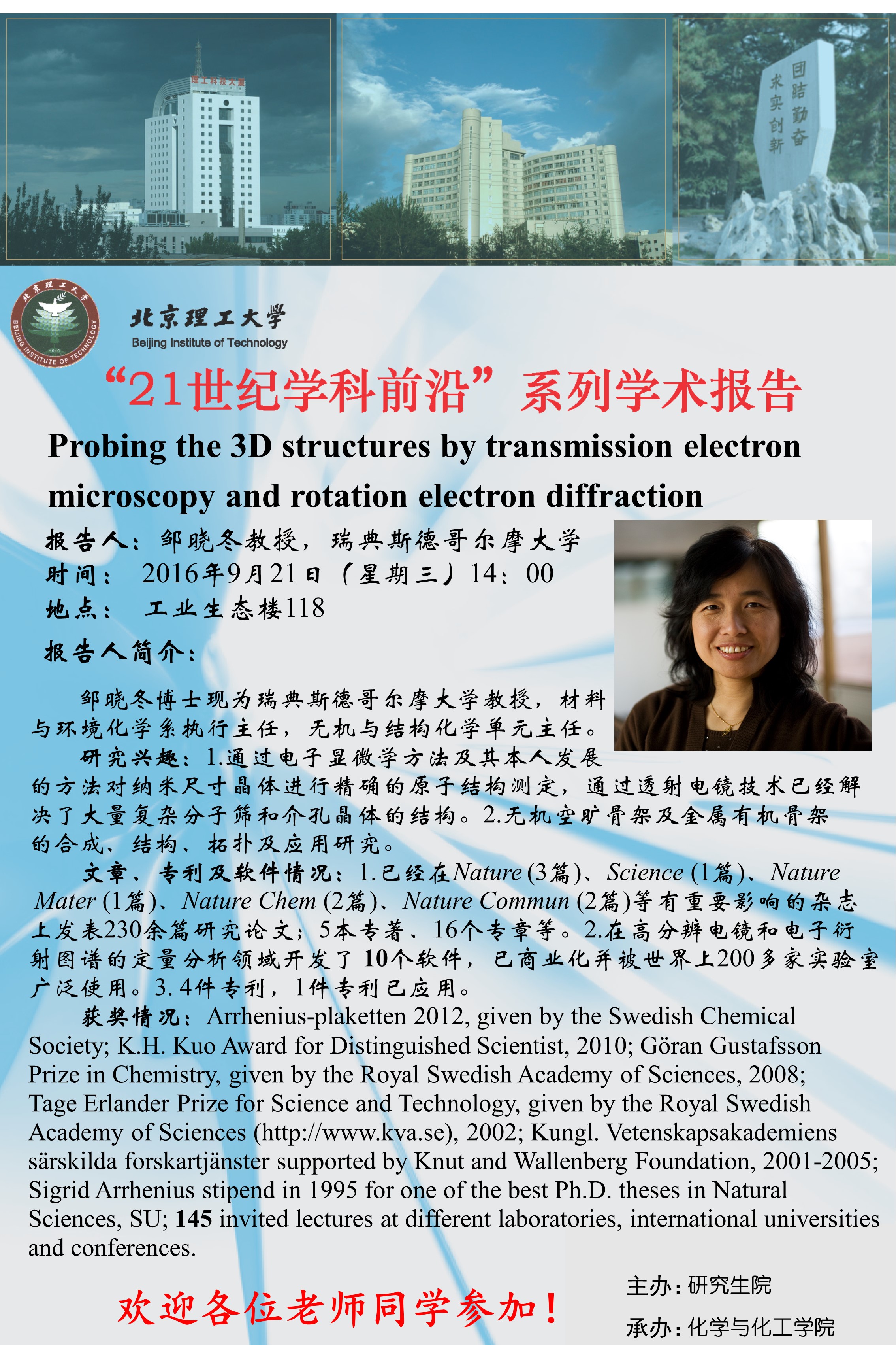 【必威西汉姆联】“21世纪学科前沿”邹晓冬教授学术报告通知