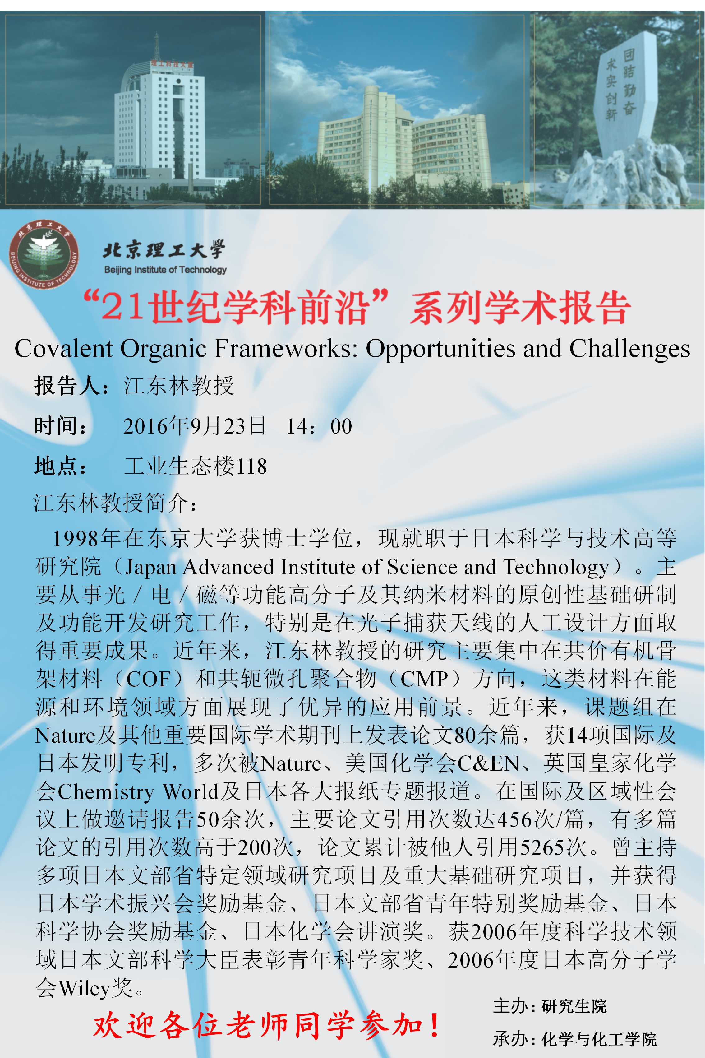 【必威西汉姆联】“21世纪学科前沿”Omar M.Yaghi教授学术讲座通知