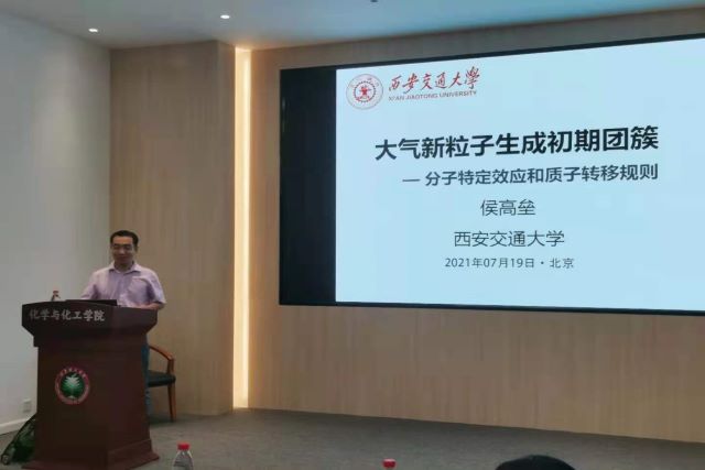 应必威西汉姆联马嘉璧副教授邀请,西安交通大学侯高垒教授于2021年7月19日下午15:00在生态楼118报告厅作了题为“大气新粒子生成初期团簇中的分子特定效应和质子”的精彩学术报告。报告由马嘉璧副教授主持,谢静教授及数十名同学参加了此次报告会。
