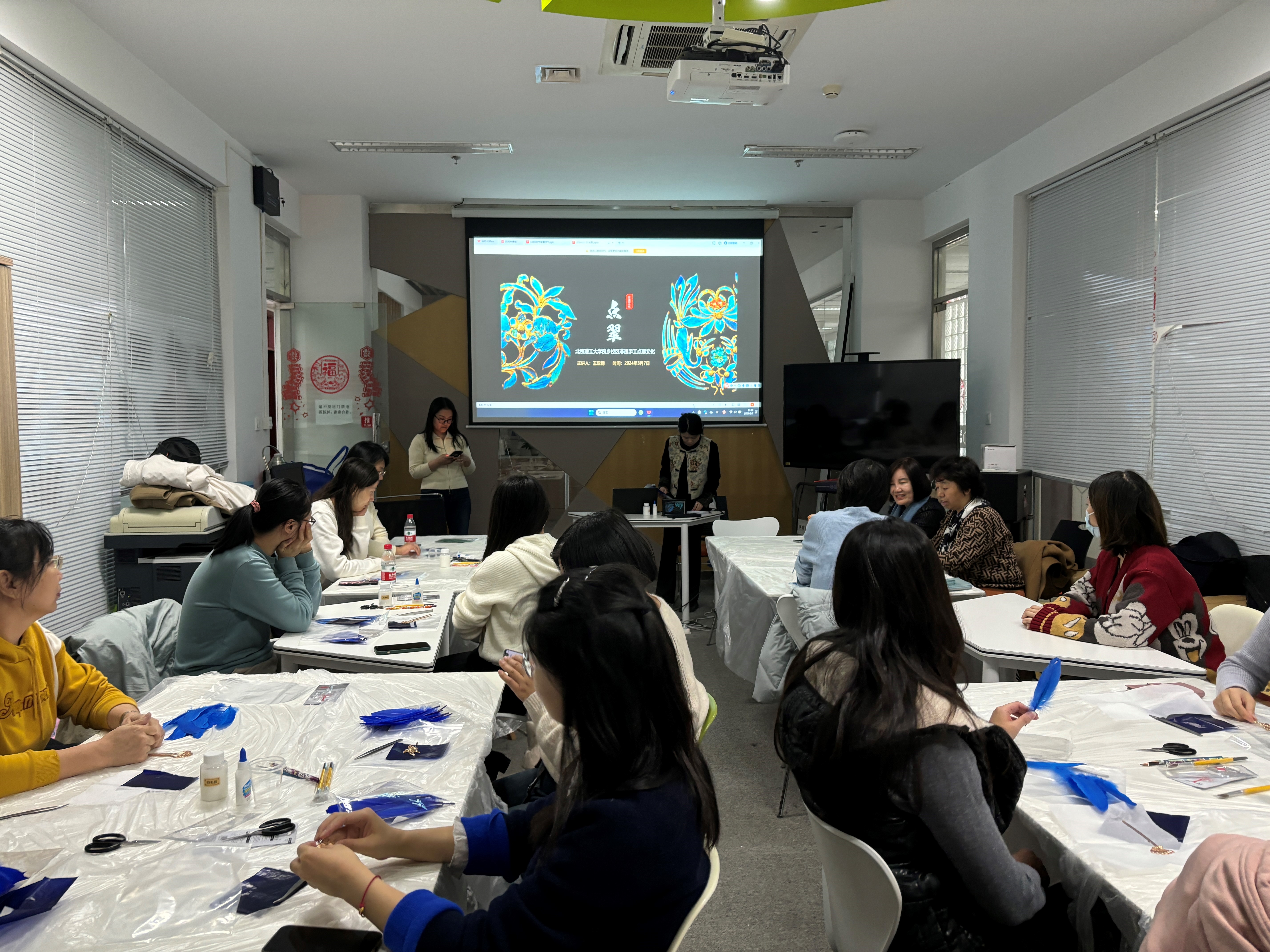 在第114个国际劳动妇女节来临之际, 3月7日下午,必威西汉姆联工会举办的 “非遗仿点翠DIY·国潮文化”活动,在工业生态楼7层教工之家举行,20余位教职工参加活动,工会主席耿俊明出席此次活动。