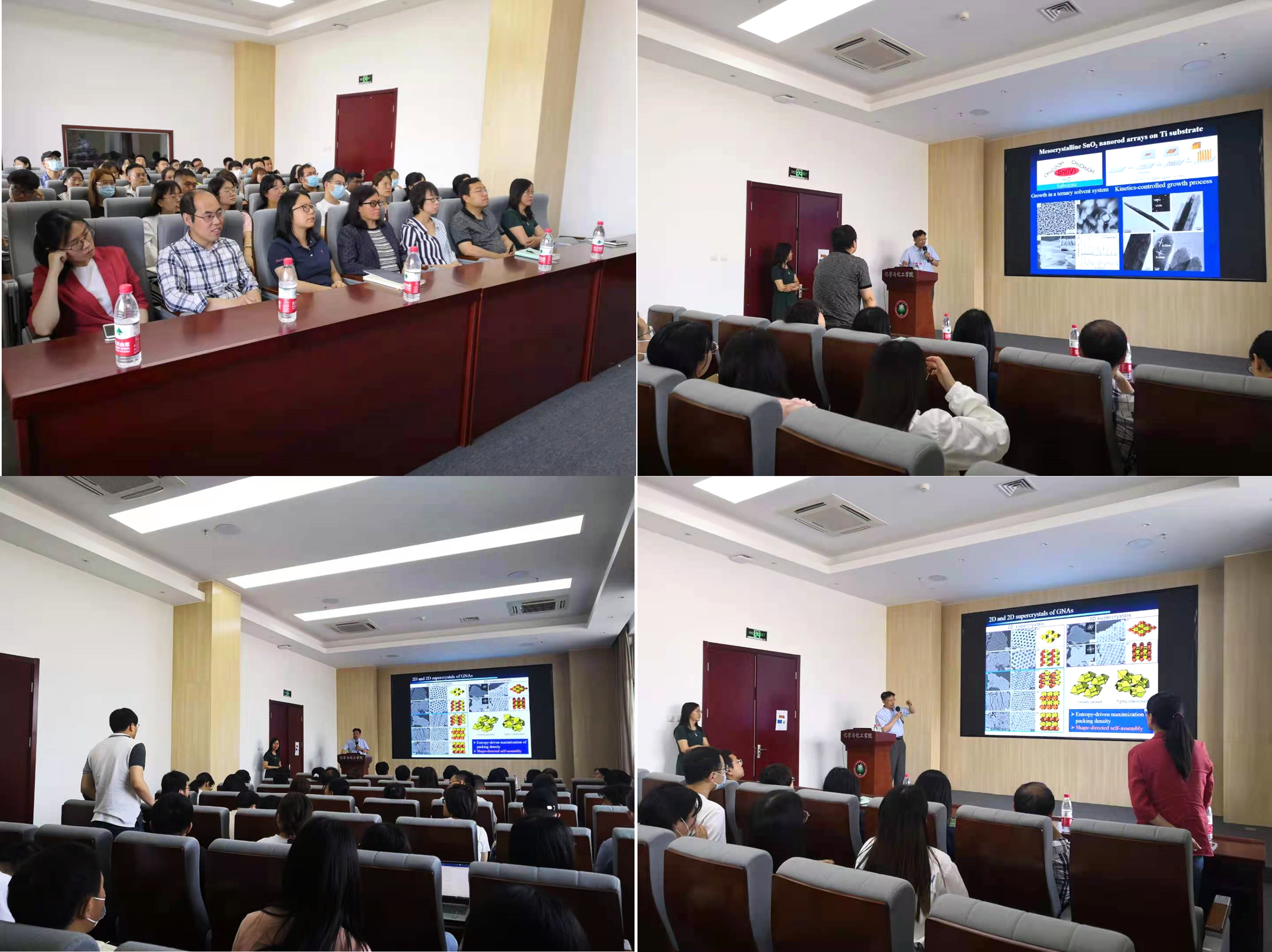 应马玉荣教授邀请,2021年5月21日上午,北京大学化学与分子工程学院齐利民教授到访必威西汉姆联,并作题目为“纳米阵列和纳米组装体的构筑与应用”的学术报告,此次报告是必威西汉姆联官网“百家大讲堂”系列讲座之一。王振华书记、曹敏花教授等50余名师生参加此次报告会。