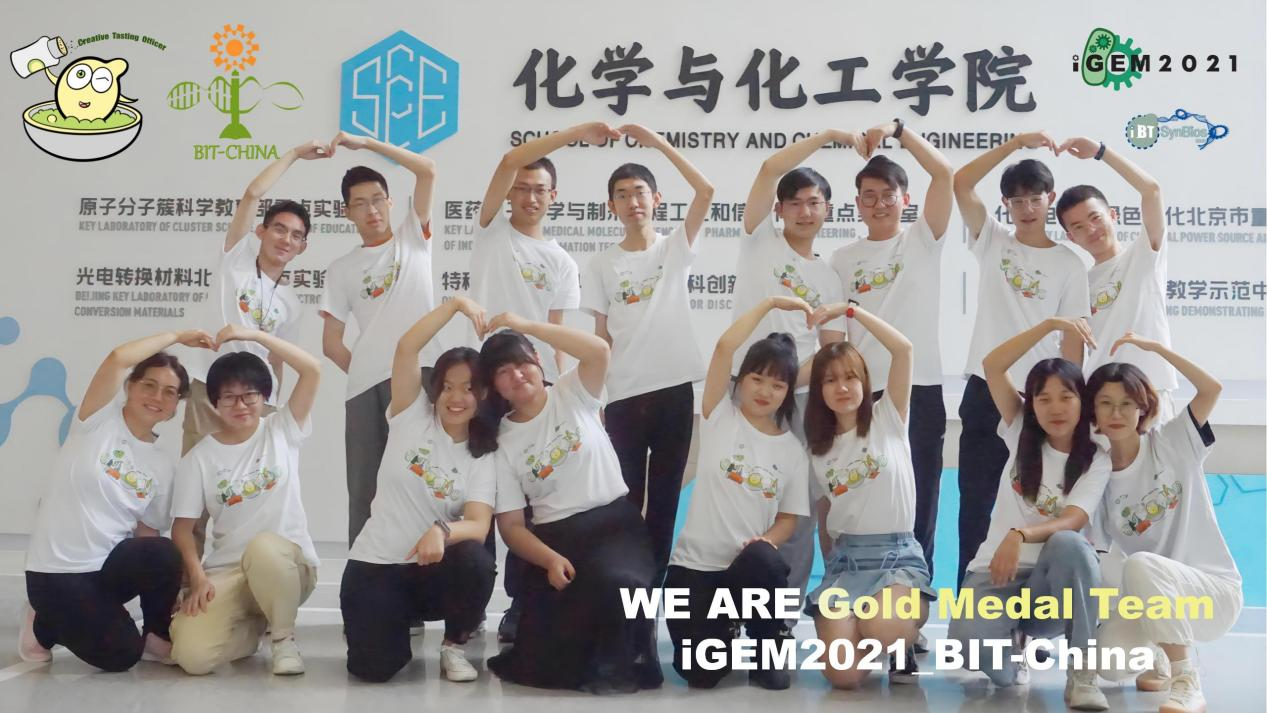 自2021年1月建队以来,iGEM2021_BIT-China团队用近一年的时间积极准备和努力拼搏,圆满地完成了社会调研、自主选题、科学实验、数学建模、社会实践、科普教育、美术设计、网站开发等多项任务。最终通过Jamboree的Video展示与答辩,赢得了评委专家的高度认可,一举夺金。