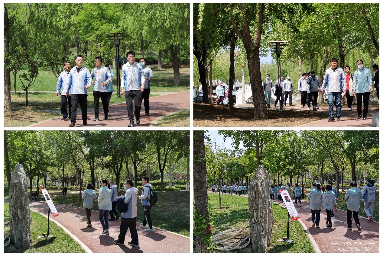 环湖健步走的过程中教师们精神抖擞,活力四射,结合在沿途各点设置的党史相关的重大事件图片展,重温党的成长历程,感悟初心,践行新时代使命。