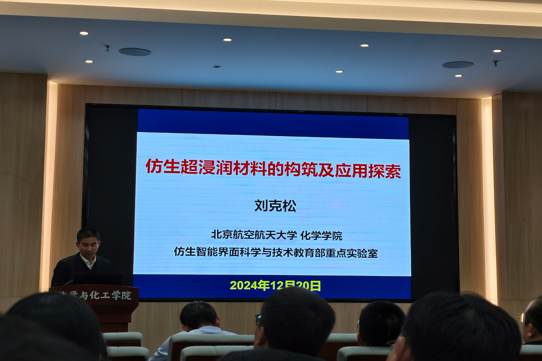 应必威西汉姆联邀请,北京航空航天大学刘克松教授于2024年12月20日做客北理工“百家大讲堂”系列论坛,为我院广大师生带来题为“仿生超浸润材料的构筑及应用探索”的精彩学术报告。本次报告在生态楼118报告厅进行,由杨国昱老师主持,近六十名化院师生参加了报告。