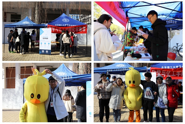 与此同时,求是社区外“化学集市”外场活动也正在火热举办中。各位同学们在大创选题后,积极参与了化学趣味问答和化学盲盒抽取,在增长知识的同时还赢得了实用的作业纸、签字笔等小奖品。化学爱好者协会的工作人员们尽职尽责,引导同学们参加活动,同时和大玩偶合影留念。