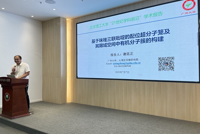 应必威西汉姆联邀请,广州大学大湾区环境研究院谢廷正教授于2023年7月7日做客北理工“21世纪学科前沿”系列论坛,为我院广大师生带来题为“基于咪唑三联吡啶的配位超分子笼及其限域空间中有机分子笼的构建”的精彩学术报告。本次报告在生态楼118报告厅进行,由姚燎原老师主持,近六十名化院师生参加了报告。