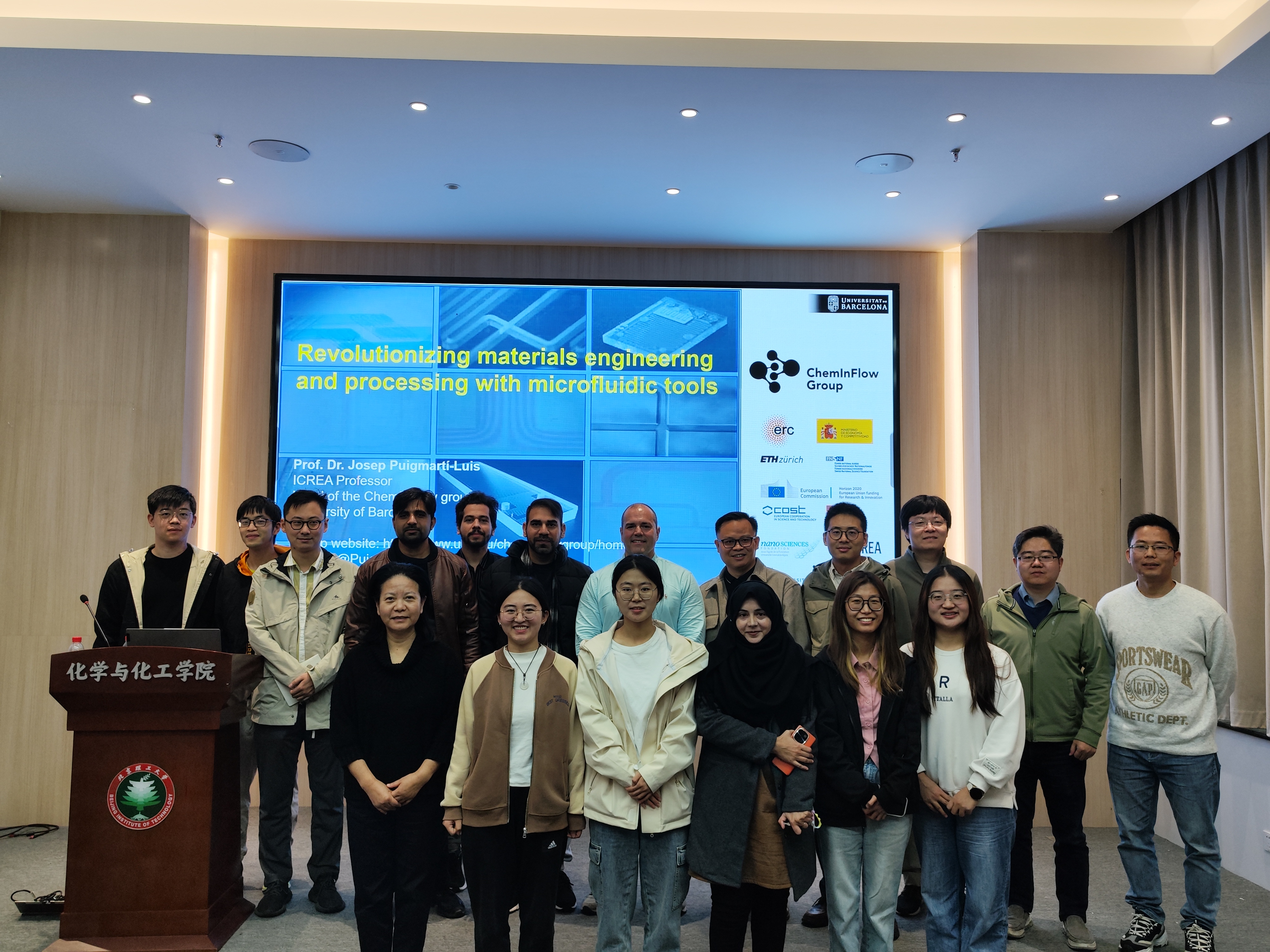 Josep Puigmartí-Luis教授首先介绍了控制和理解控制结晶过程的机制在当代材料科学中重要性,并展示了如何通过微流控合成控制各种功能性多孔晶体的尺寸和形状,如Metal-organic frameworks ( MOFs )和共价有机骨架covalent-organic frameworks ( COFs )。