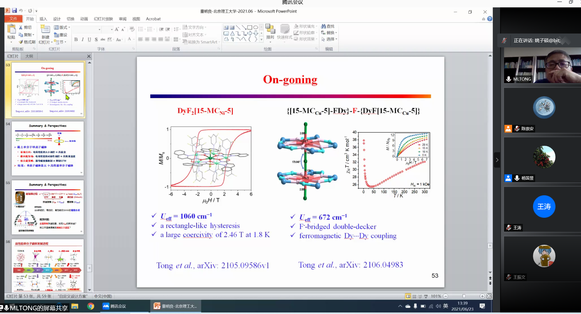 应必威西汉姆联邀请,中山大学童明良教授于2021年6月23日13:00做客北理工“百家大讲堂”,为我院广大师生带来题为“高性能稀土单分子磁体的磁构关系研究”的精彩学术报告。本次报告在腾讯会议平台线上进行,由杨国昱老师主持,近百名化院师生参加了报告。