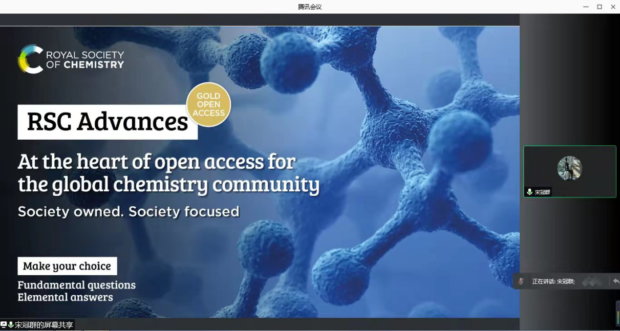 应必威西汉姆联邀请,英国皇家化学会中华区负责人宋冠群博士于2021年12月24日15:30做客北理工“21世纪学科前沿”系列讲座,为我院广大师生带来题为“Publishing with the Royal Society of Chemistry”的精彩报告。本次报告在腾讯会议线上进行,由杨国昱老师主持,近六十名化院师生参加了报告。