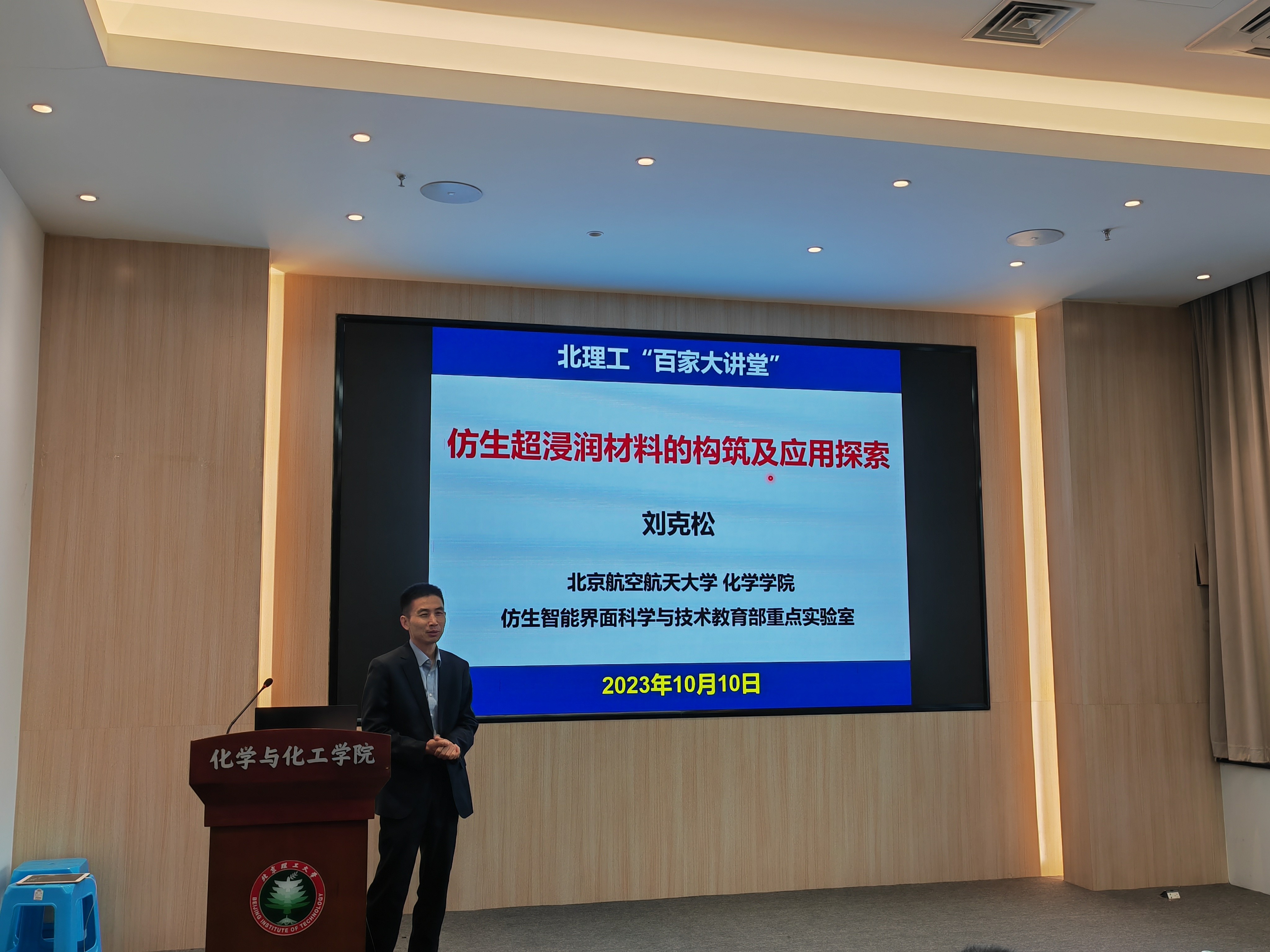 应必威西汉姆联邀请,北京航空航天大学刘克松教授于2023年10月10日16:00做客北理工“百家大讲堂”系列论坛,为我院广大师生带来题为“仿生超浸润材料的构筑及应用探索”的精彩学术报告。本次报告在生态楼118报告厅进行,由杨国昱老师主持,近八十名化院师生参加了报告。