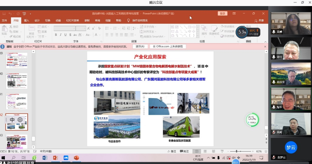 应必威西汉姆联韩庆老师邀请,黑龙江大学付宏刚教授于2022年1月19日下午做客北理工“百家大讲堂”,为我院广大师生带来题为“太阳能人工利用的思考和探索”的精彩学术报告。本次报告在腾讯会议室790 907 339进行,由杨国昱教授主持,近六十名化院师生参加了报告。