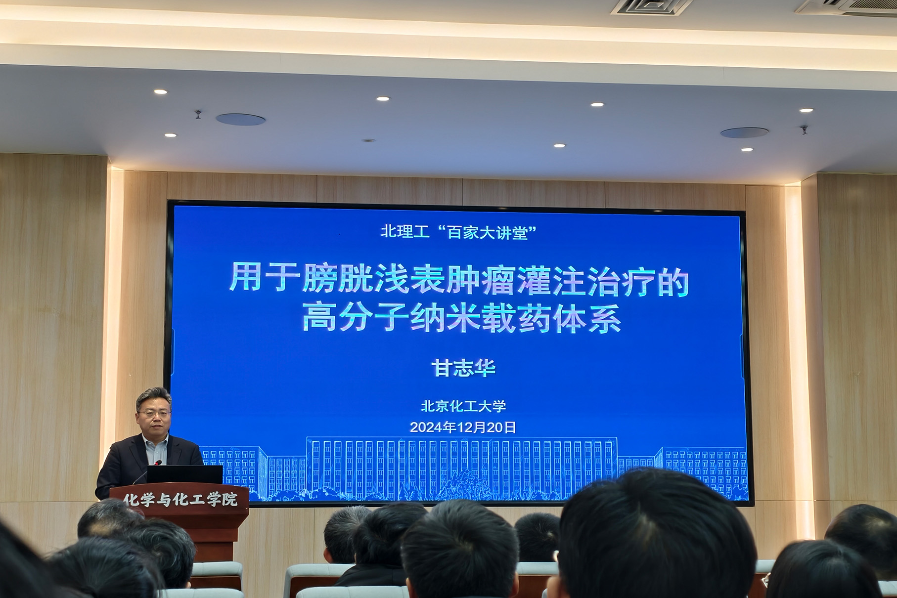 应必威西汉姆联邀请,北京化工大学甘志华教授于2024年12月20日做客北理工“百家大讲堂”系列论坛,为我院广大师生带来题为“用于膀胱浅表肿瘤灌注治疗的高分子纳米载药体系”的精彩学术报告。本次报告在生态楼118报告厅进行,由杨国昱老师主持,近六十名化院师生参加了报告。