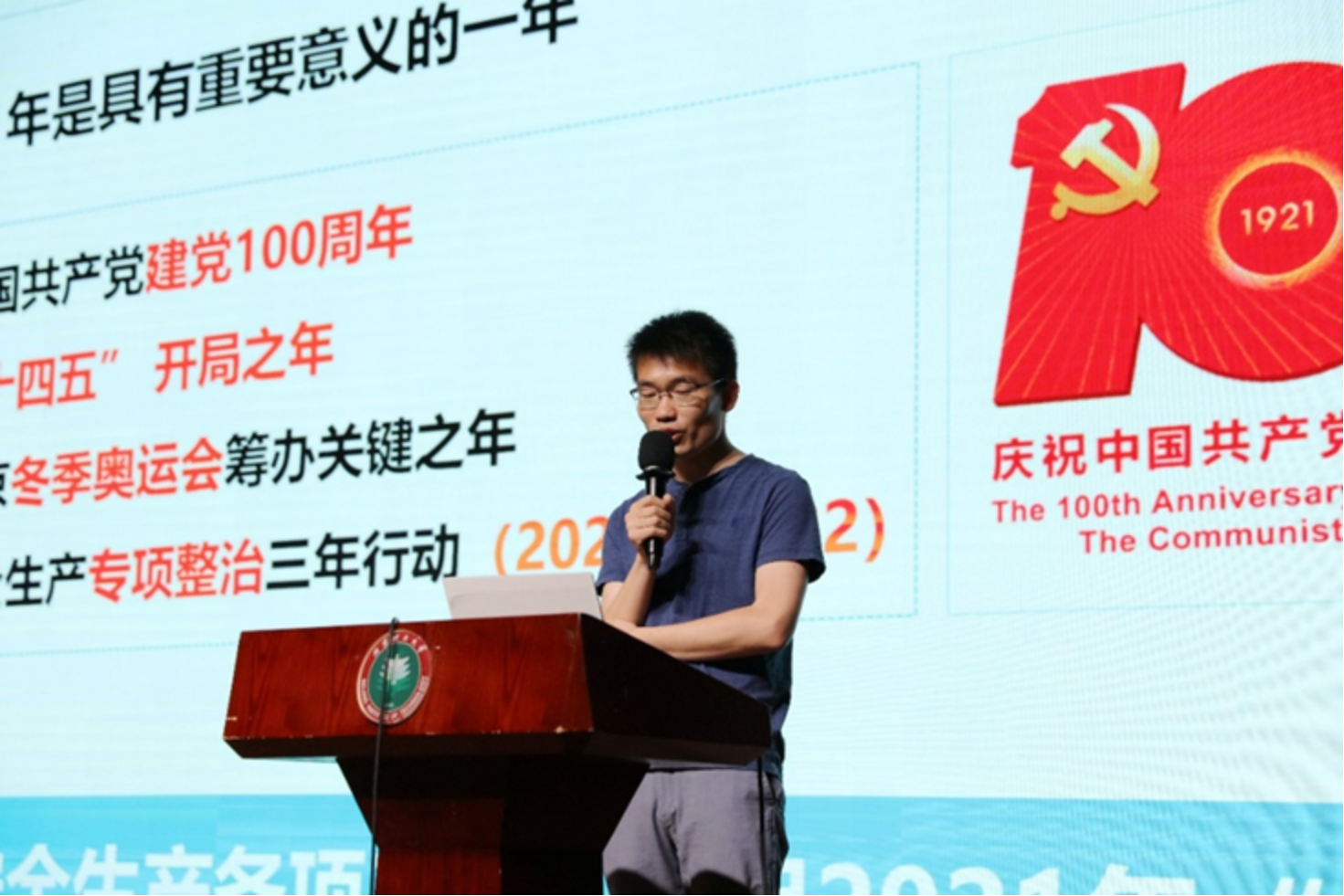 首先,副院长耿俊明从健全安全管理机制体制、加强宣教演练和监督检查、开展危化品专项治理等方面对学院2020年安全生产工作向全院师生做了总结汇报,并就“安全生产月”活动方案进行了动员和部署。