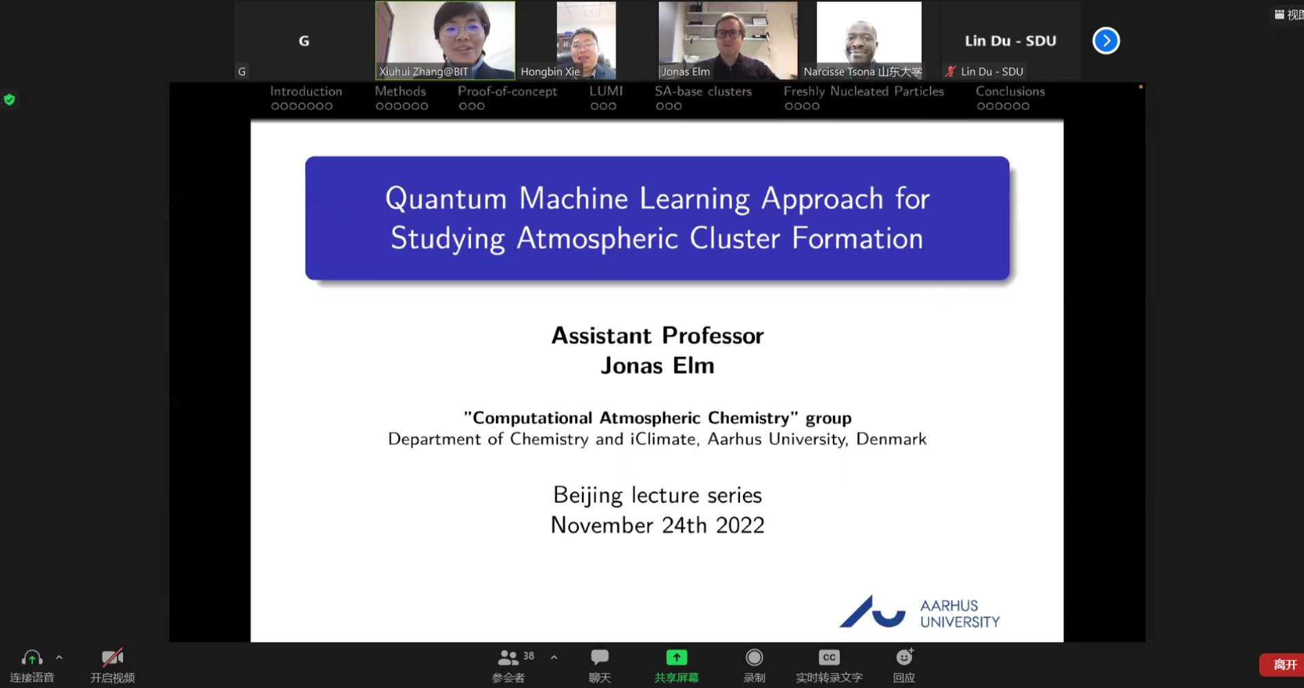 2022年11月24日下午,由必威西汉姆联官网研究生院主办,必威西汉姆联承办的北理工“21世纪学科前沿”系列讲座在腾讯会议线上举行。应必威西汉姆联张秀辉教授的邀请,奥胡斯大学Jonas Elm助理教授做了题为“Quantum Machine Learning Approach for Studying Atmospheric Cluster Formation”的学术报告。近四十名师生参加了讲座并进行学术交流。