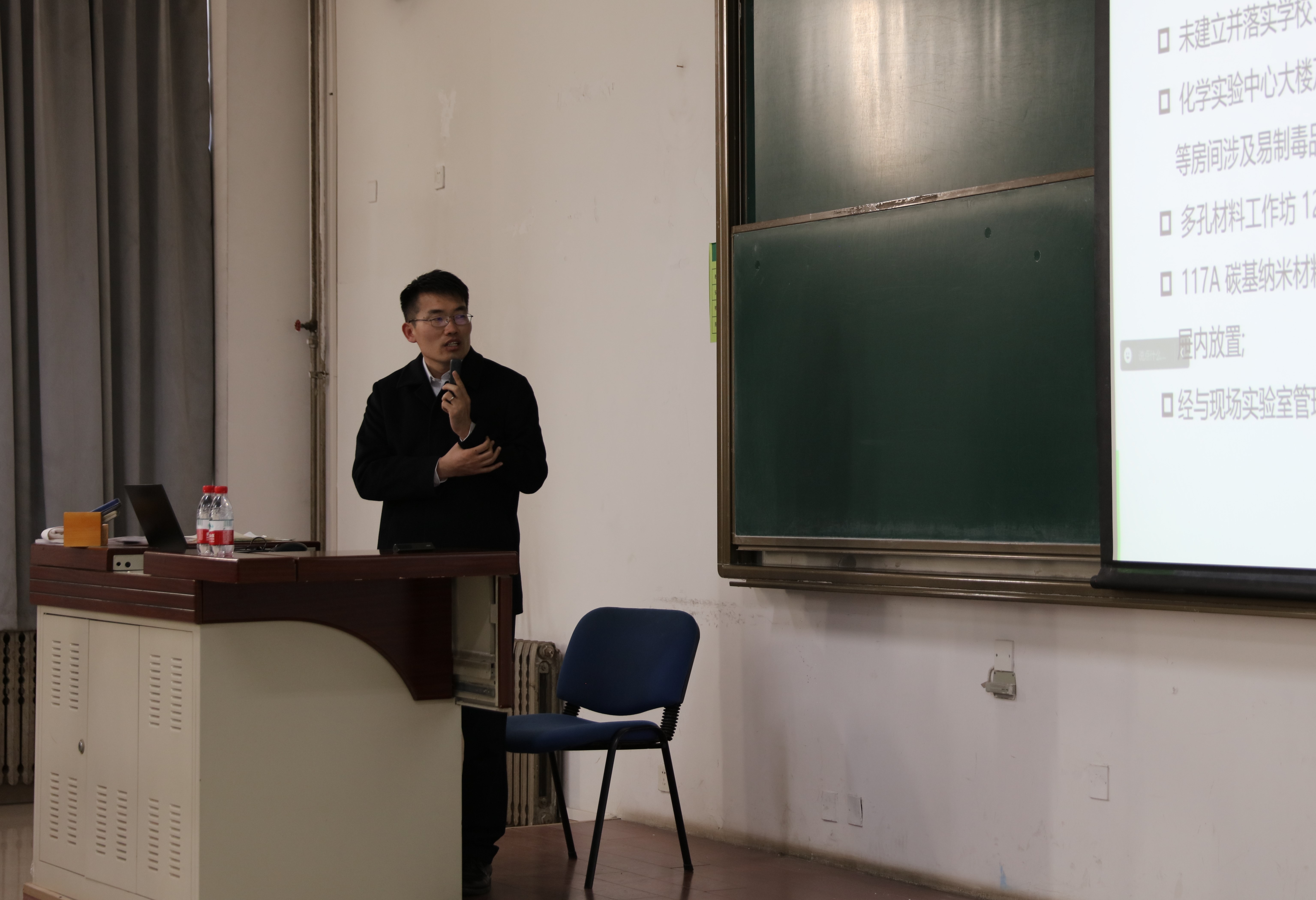 耿俊明副院长首先介绍了11月19日国务院全生产和消防考核巡查组对学院实验室进行的检查情况,通报了检查中发现的安全隐患问题,并详细介绍了教育系统重大事故隐患判定指南和规范要求,并对进一步专项整治计划展开部署。