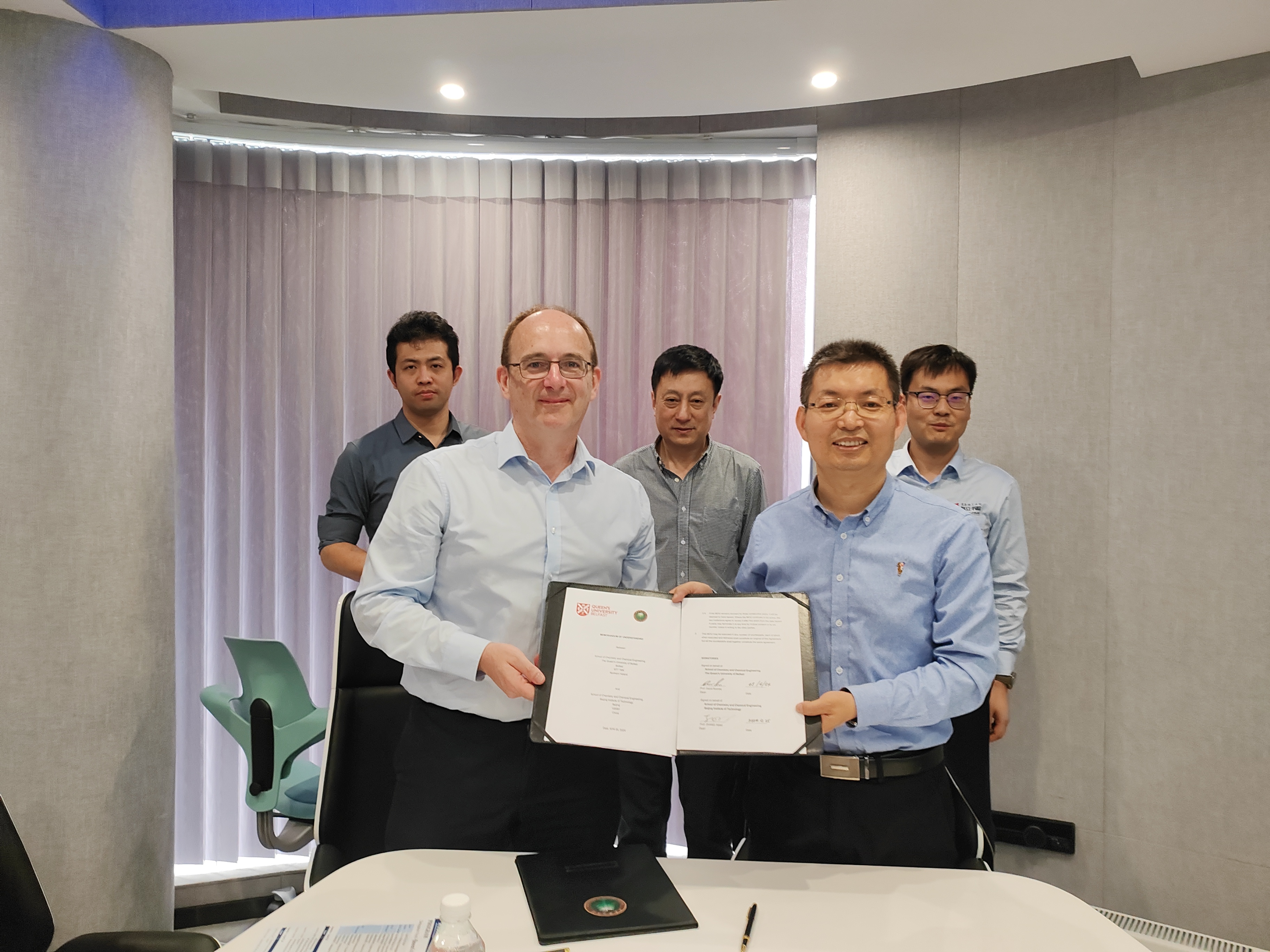 张加涛对David Rooney一行来访表示热烈欢迎,回顾了两院的合作历史和取得的成效,进一步介绍了学院的发展现状和重点布局领域,双方一致同意在原有合作基础上进一步加强零碳低碳领域合作,并积极加快推进联合办学项目。会谈中,张加涛和David Rooney分别代表两院签署了院级合作备忘录。
